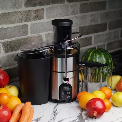 توجه به سلامتی و تغذیه همیشه یکی از دغدغههای فکری افراد بوده و فواید مصرف مواد غذایی سالم و بخصوص نوشیدنیهای طبیعی برای همه روشن است.دستگاه آبمیوهگیری هیملر مدل HJC-4250 با 1200 وات قدرت و تیغه های تیتانیوم(( از مهمترین خصوصیات تیتانیوم میتوان به مقاومت بالای آن در برابر خوردگی اشاره نمود و همچنین تیتانیوم در مقایسه با دیگر عناصر فلزی دارای بالاترین نسبت مقاومت به چگالی است)) با کارکرد تخصصی خود، در مدتزمانی کوتاه، امکان تهیهی انواع آبمیوههای مختلف مانند سیب، هویج، پرتقال و کرفس... را برای شما فراهم میکنند؛ والدینی که نگران تغذیه کودکانشان هستند و افرادی که مواد طبیعی را به مواد خوراکی بیرون ترجیح میدهند در این گروه قرار میگیرند.وجود یک آبمیوهگیری برقی در آشپزخانه برای این گروه از افراد لازم و ضروری به نظر میرسد. با وجود این دستگاه در منزل دیگر نیازی به خرید آبمیوههای خوراکی با مواد نگهدارنده مضر نیست. آبمیوهگیریهای برقی با توجه به توان مصرفی و چندکاره یا تک کاره بودنشان کارایی متفاوتی از خود به نمایش میگذارند. با استفاده از یک آبمیوهگیری چند کاره از یک برند مطرح میتوانید تمام نیاز خود را در تهیه آبمیوههای طبیعی و حتی اسیاب و خردکن هم برطرف کنید و در هر ساعت از شبانه روز آب میوه مورد علاقه خود را در اختیار داشته باشد. هیملر یکی از شرکتهای مطرح آلمانی در عرصه تولید لوازم خانگی است و اقلام گوناگونی را تولید میکند. آبمیوهگیری هیملر HJC-4250 با این مشخصات میتوانند همیشه یکی از اولویتهای افراد برای خرید باشند.
